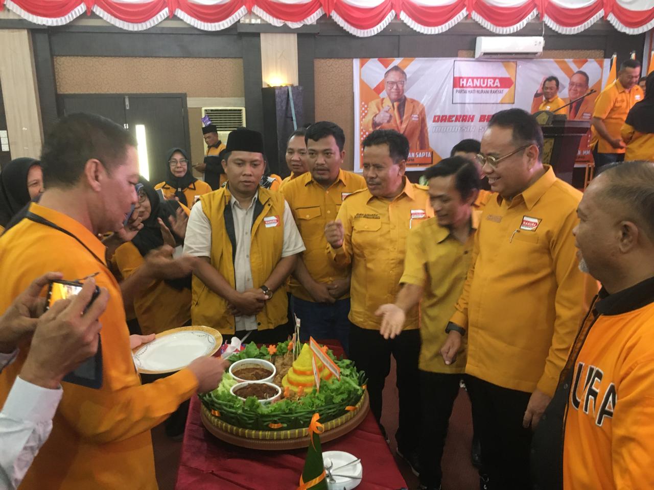 Sebelum pelaksanaan pendidikan politik, pengurus partai Hanura melakukan pemotongan tumpeng.(*/mes)