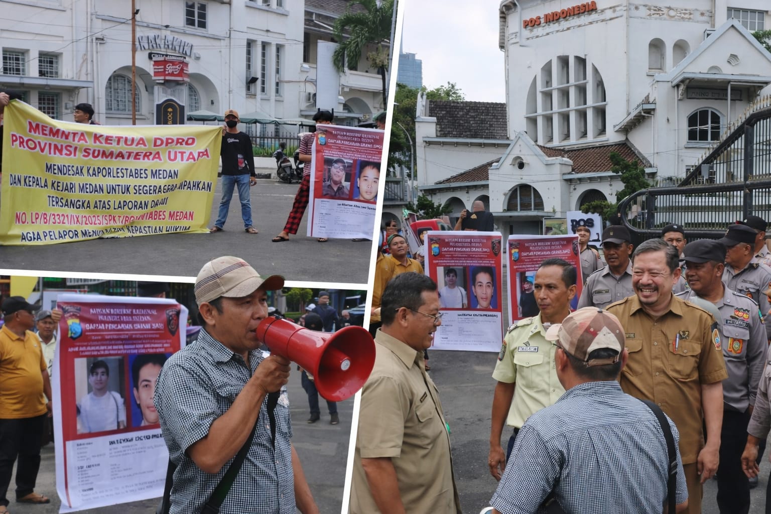 Hal itu disampaikan Koordinator Aksi, Antoni Gultom saat berorasi di depan Gedung DPRD Sumut, Senin (6/4) pagi. “Kami Forum Aktivis Peduli Keadilan Sumatera Utara meminta kepada ketua DPRD Sumut mendesak Kapolrestabes Medan dan Kasat Reskrim serius menangani kasus ini dan segera menangkap tiga tersangka lainnya yakni, LS, WOP dan SP yang statusnya sudah di DPO Polrestabes Medan. Kami percaya bila Satreskrim Polrestabes Medan serius memburu para DPO, hal ini bukan hal yang sulit,”ungkapnya.