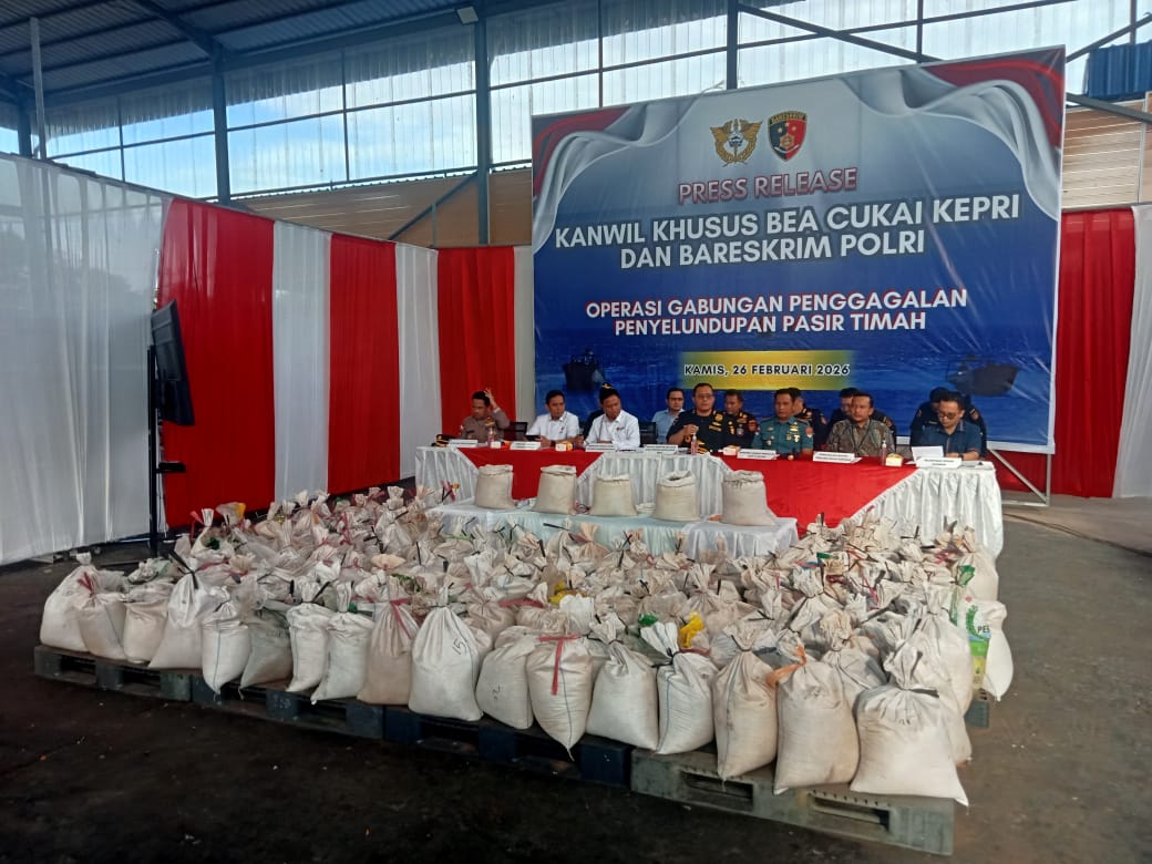 Kepala Kantor Wilayah DJBC Khusus Kepulauan Riau, Sodikin menjelaskan, pada hari Senin, 23 Februari 2026, petugas mendapatkan informasi terkait adanya kapal yang bermuatan pasir timah dari Bangka tujuan Malaysia, sehingga tim gabungan melakukan pemantauan terhadap kapal tersebut.”ujarnya saat menggelar konferensi pers,Kamis (26/2/2026)