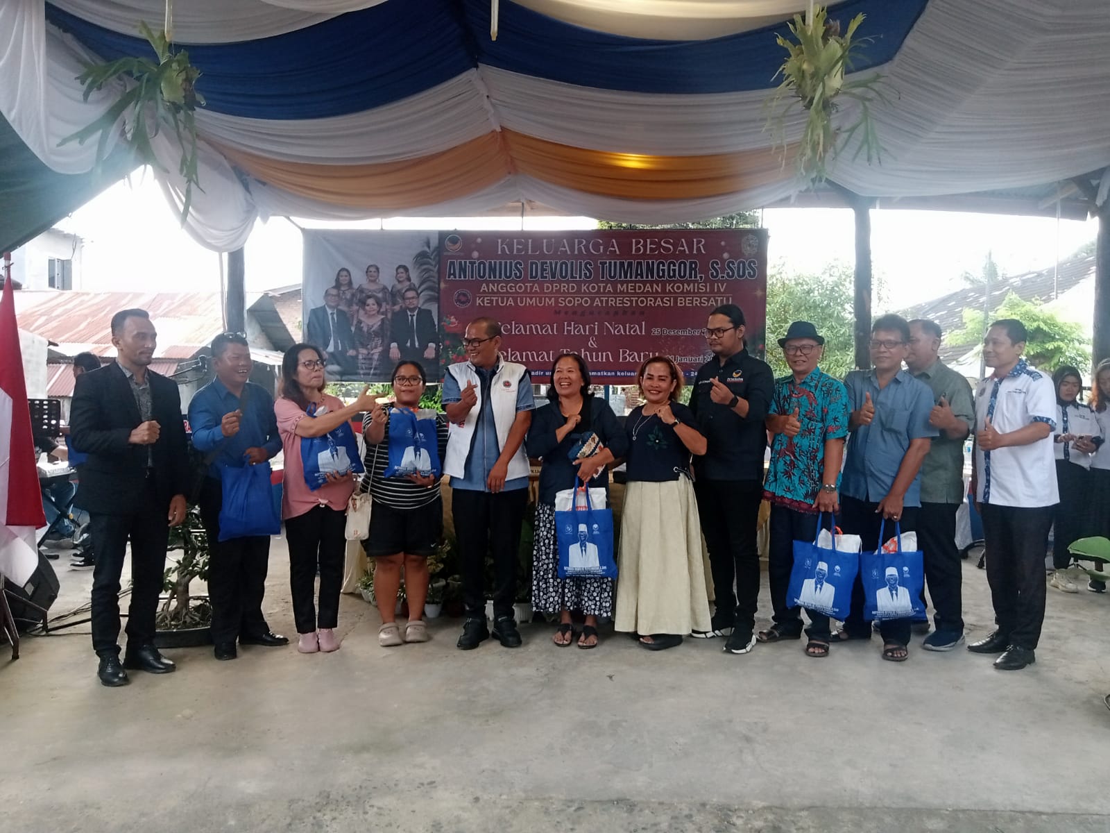 Sehingga berakhirnya acara pembagian Ribuan Paket Sembako kepada Ribuan masyarakat yang hadir, Keluarga Besar Antonius Devolis Tumanggor dan Sopo ATRestorasi Bersatu mengucapkan “Selamat Natal 2025 & Tahun Baru 2026”.