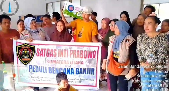 Selingsing.com, Sumut – Satgas Inti Prabowo (SIP) Provinsi Sumatera Utara (Sumut) menyalurkan bantuan kepada para korban banjir di 2 Titik Posko, Kecamatan Tanjung Pura, Kabupaten Langkat, Sumatera Utara, pada Kamis sore.(4/12/25)